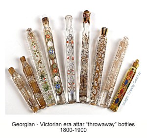 These bottles were called Throwaway, or in England sometimes Oxford Lavender bottles, because they were naive, cheaply produced, ‘disposable’ perfume packaging that one was expected to throw out when finished.