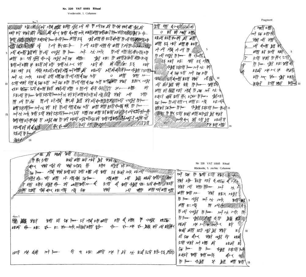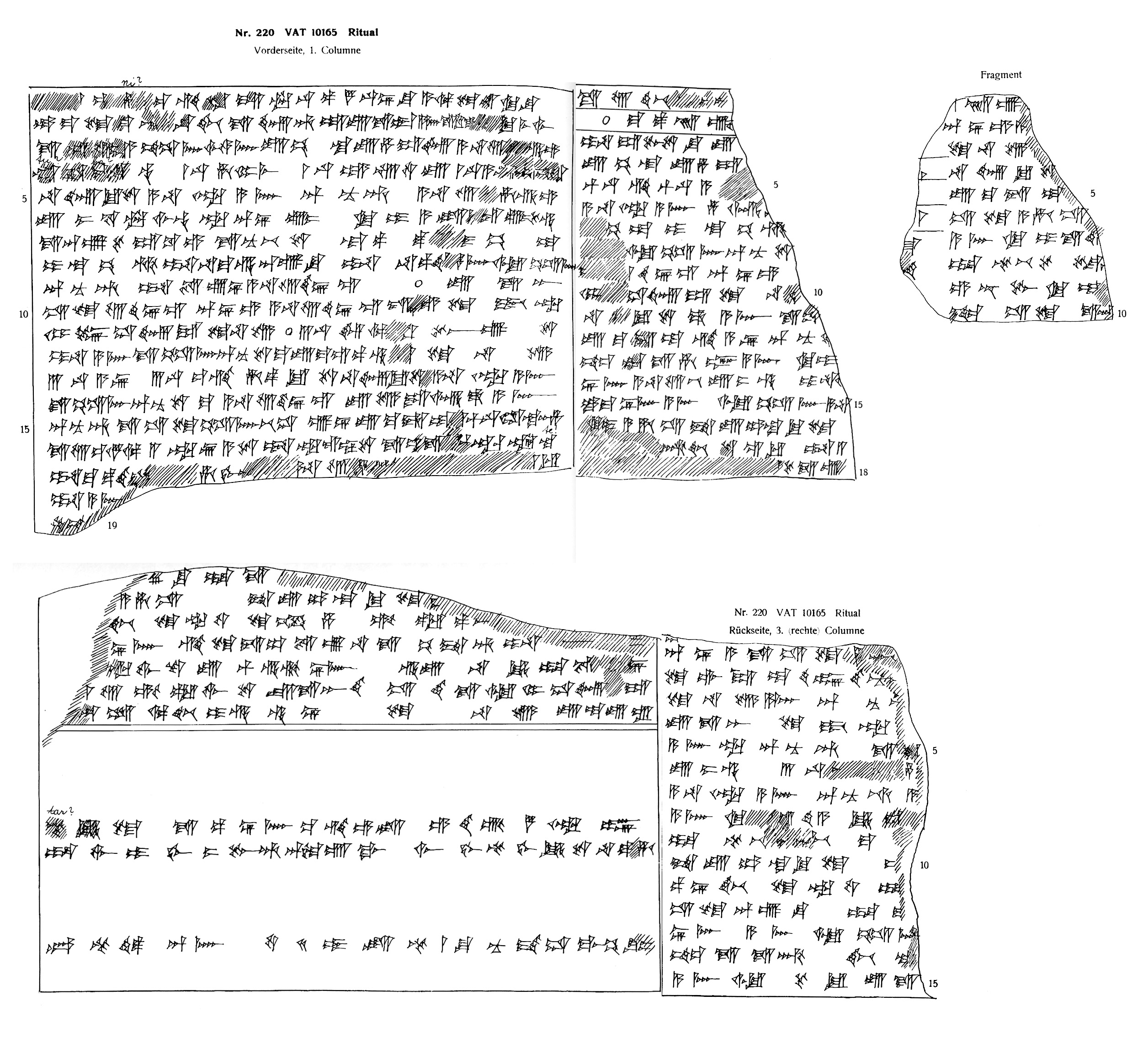 - (AS) KAR 220. VAT 10165, VAT 10445, VAT 12269 (frag). Excavation no: Ass 04347c. Vorderasiastisches Museum. Berlin, Germany.